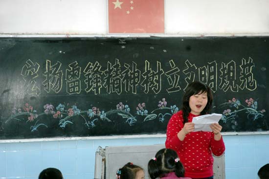 2、利用“国旗下的讲话”活动开展主题教育活动,我校四(三)中队刘甜甜同学做好“学雷锋活动”动员,少先队员代表向全校师生发出向雷锋同志学习的倡议,号召全校师生学习雷锋同志的拾金不昧、勤俭节约、乐于助人的高尚品质,和学习他对工作、学习认真负责的态度,一起行动起来,学习雷锋叔叔的精神,做一名对社会有所贡献的人等。