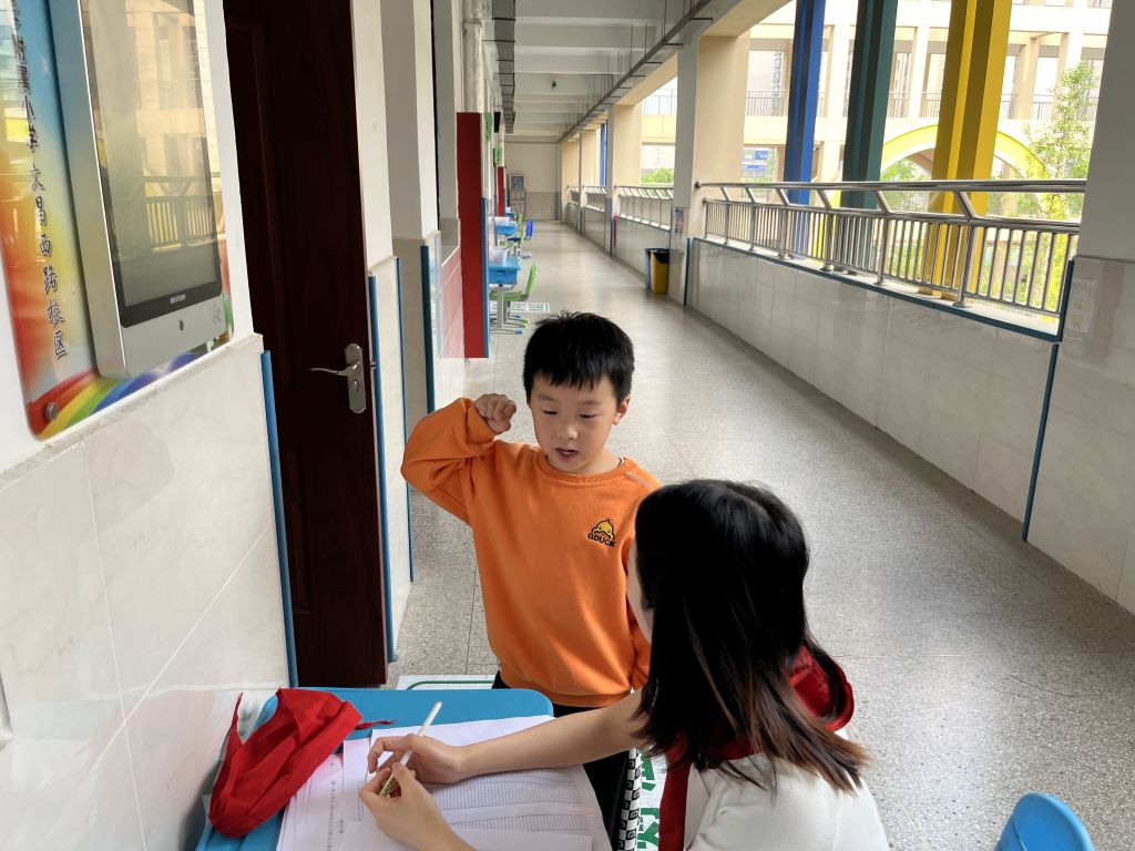 面对“考官”,预备队员们既兴奋又紧张,大家都想顺利通关,早日成为一名光荣的少先队员。