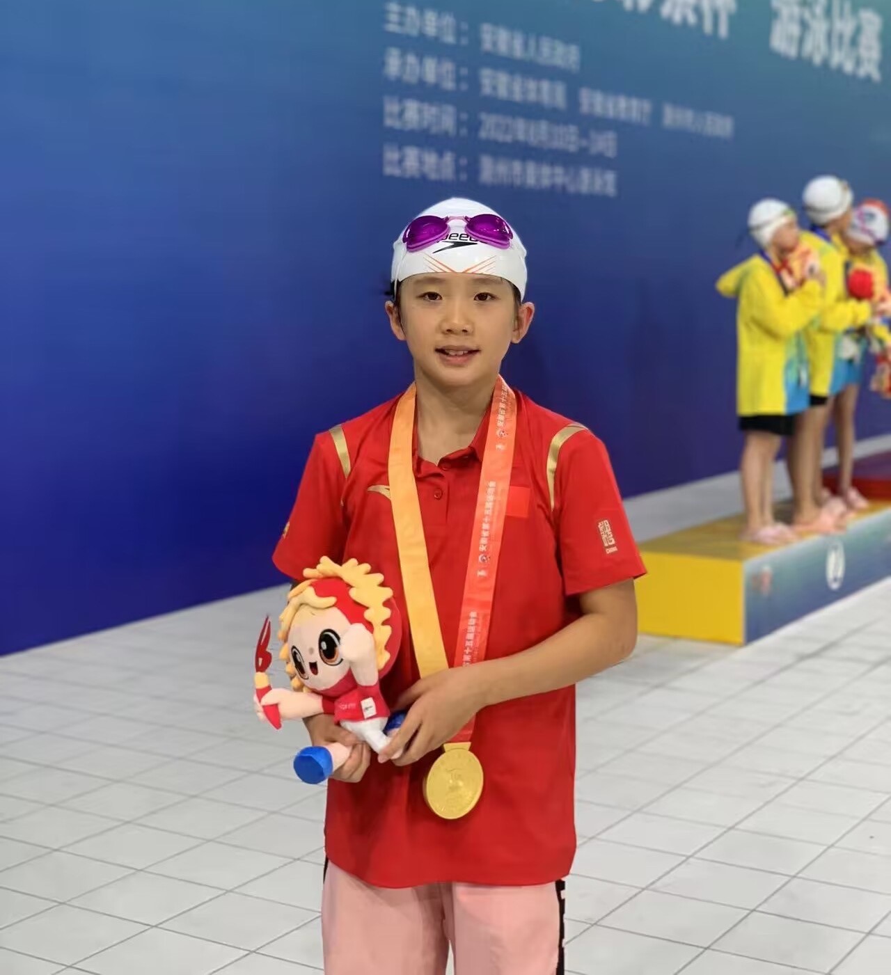 在2022年8月10日—14日举办的安徽省第十五届运动会青少年部游泳比赛中,我校文昌西路校区401班徐文娜同学获女子4×100米混合泳接力赛第一名;男女4×100自由泳接力赛第一名;女子自由泳全能第一名。向徐文娜同学表示热烈祝贺!