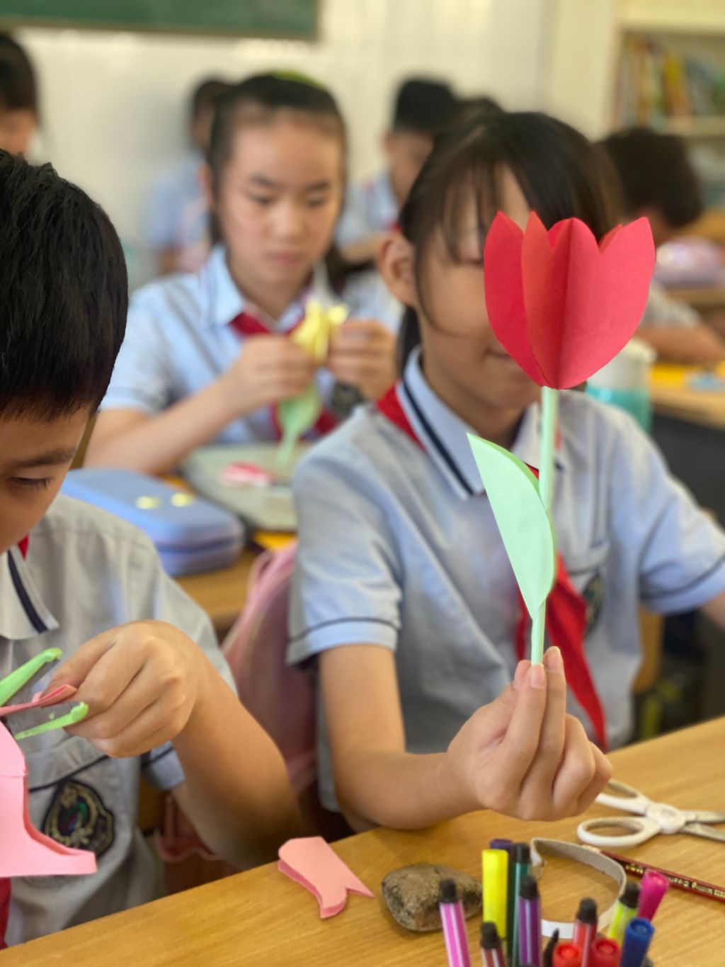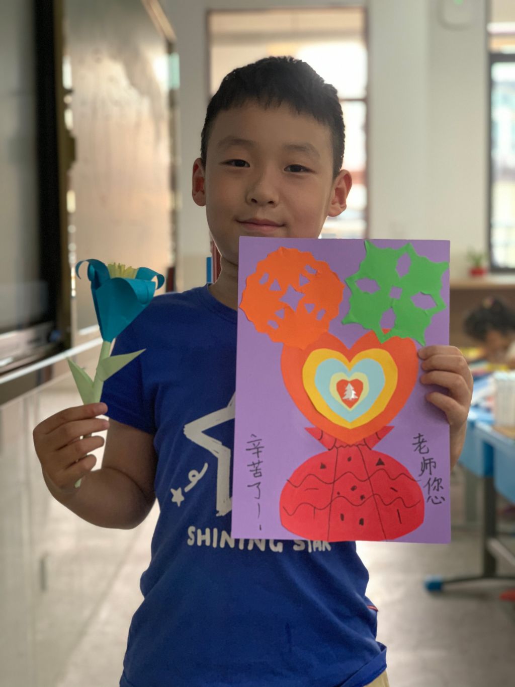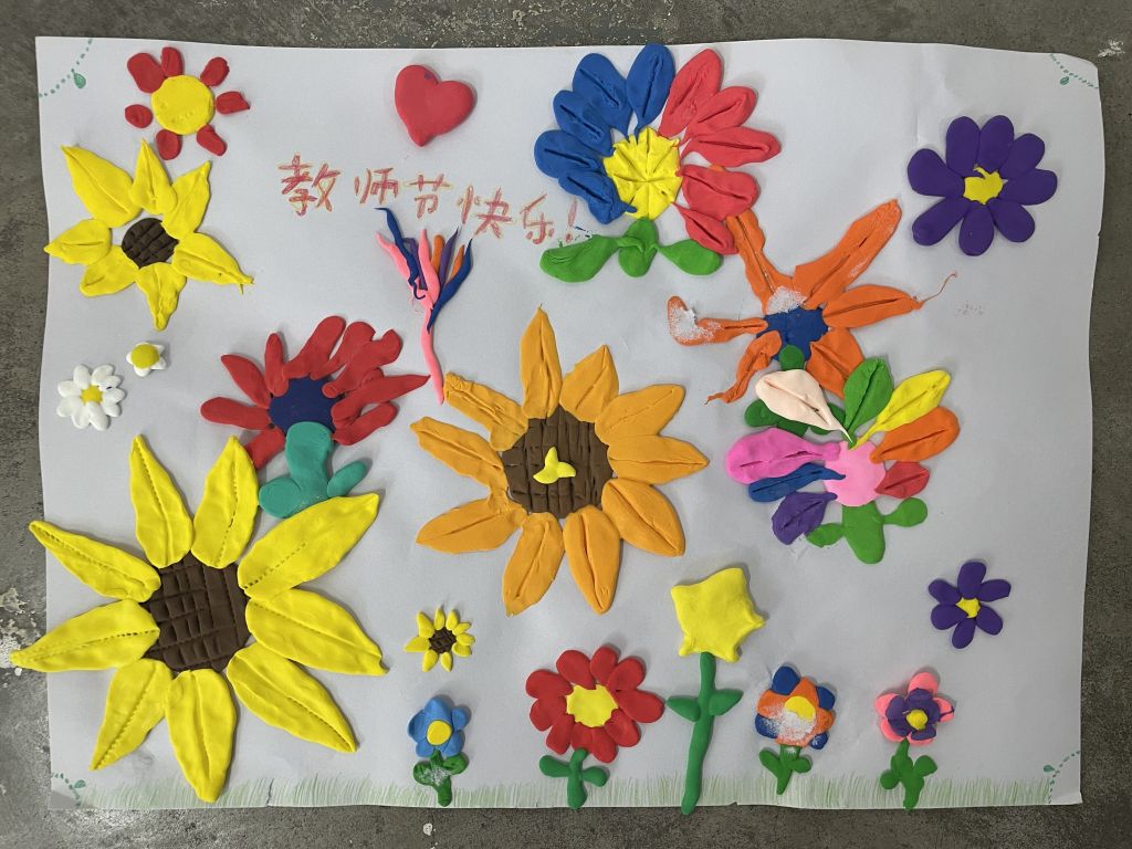 两校区的学生们在美术老师的指导下,分年级展开了各项不同手工作品的制作。学生们在老师的指导下用心制作了精美的粘土花、团花、折纸花、贺卡等,来表达对老师们的感激与感谢!