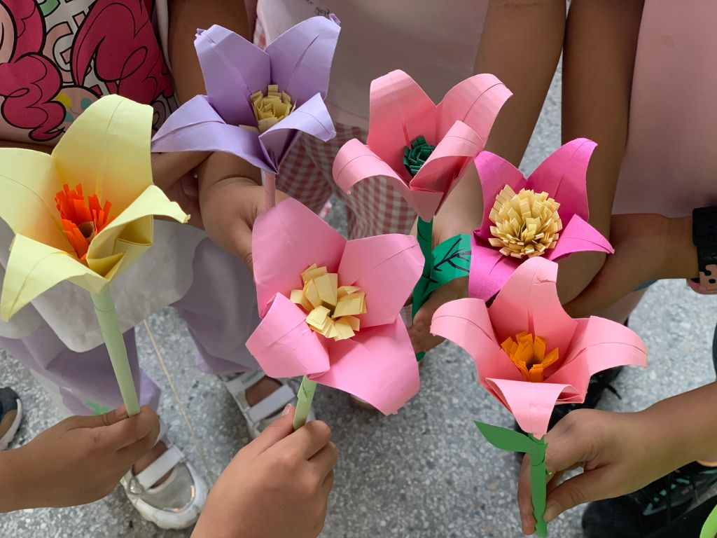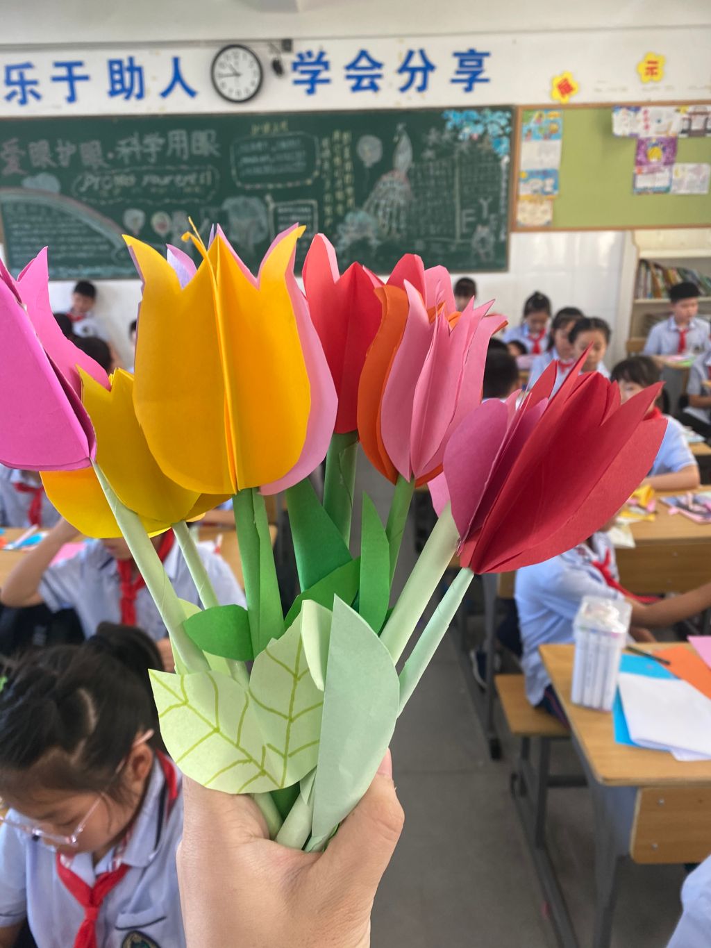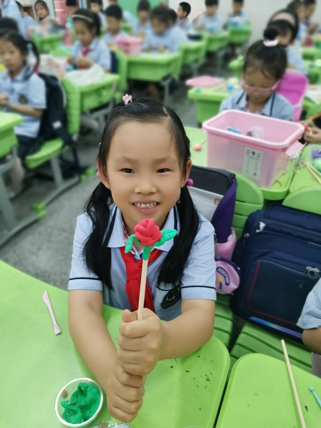两校区的学生们在美术老师的指导下,分年级展开了各项不同手工作品的制作。学生们在老师的指导下用心制作了精美的粘土花、团花、折纸花、贺卡等,来表达对老师们的感激与感谢!