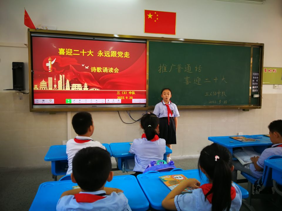 为积极响应国家推广普通话的号召,增强全体师生的语言规范意识,营造和谐的语言氛围,近日,安徽师范大学附属小学开展了“推广普通话,喜迎二十大”的推普周系列活动。