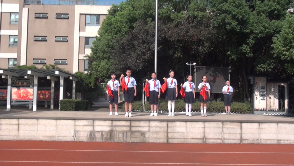 在周一的升旗仪式上,五(10)中队的六名队员进行了快板展演《中国话》,汪艺欣同学发起倡议,她号召同学们能够行动起来,讲普通话,写规范字,做自豪的少先队员。动员活动结束后,我校各年级开展了专题推普活动。