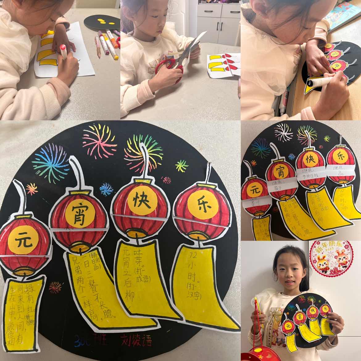 三、四年级队员制作精美的元宵谜语卡,与家人一起打灯谜、猜灯谜,秀出最强大脑,一起乐“宵”遥。