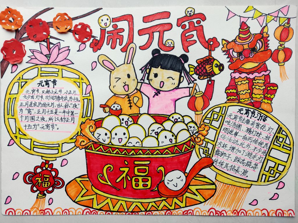 队员通过网上搜索或收集相关资料,深入了解元宵节的来历、风俗等知识,并制成了一张张精美的手抄报。