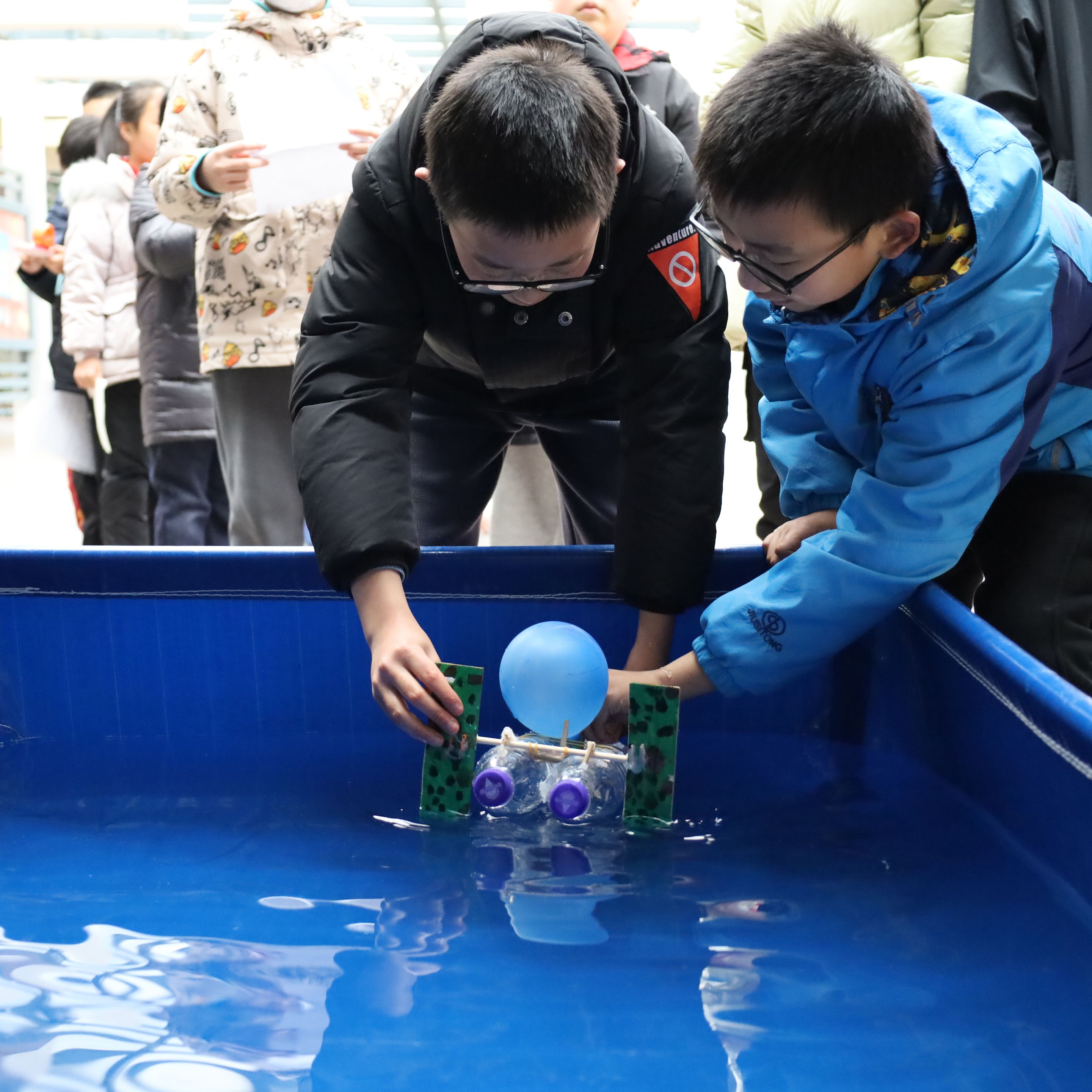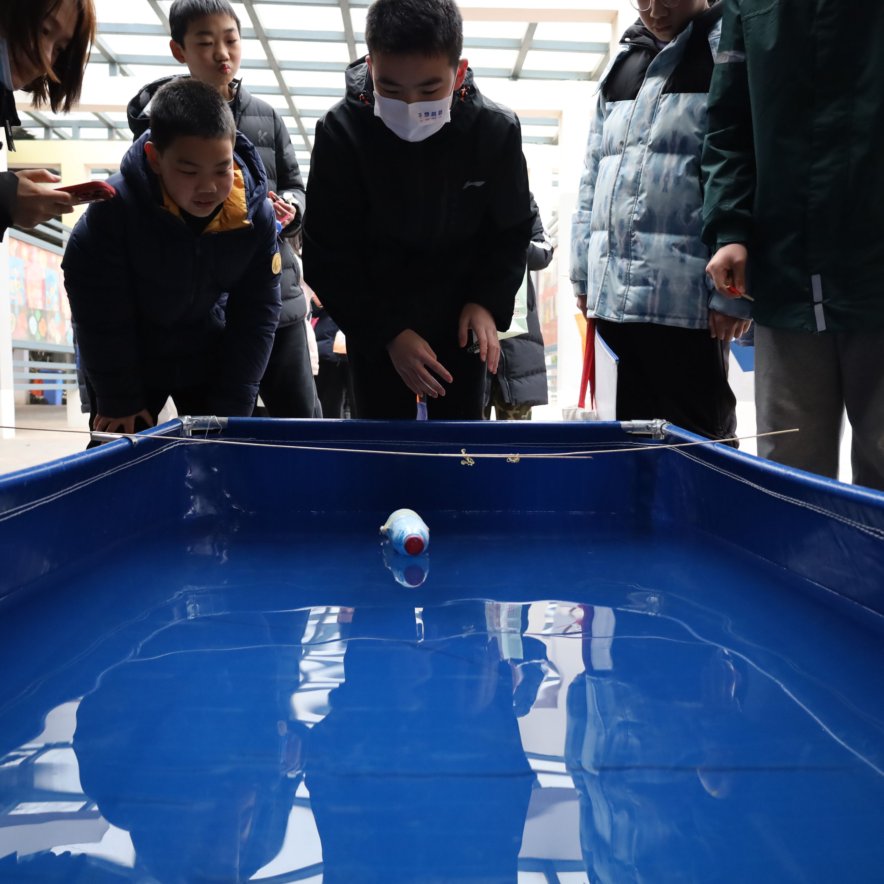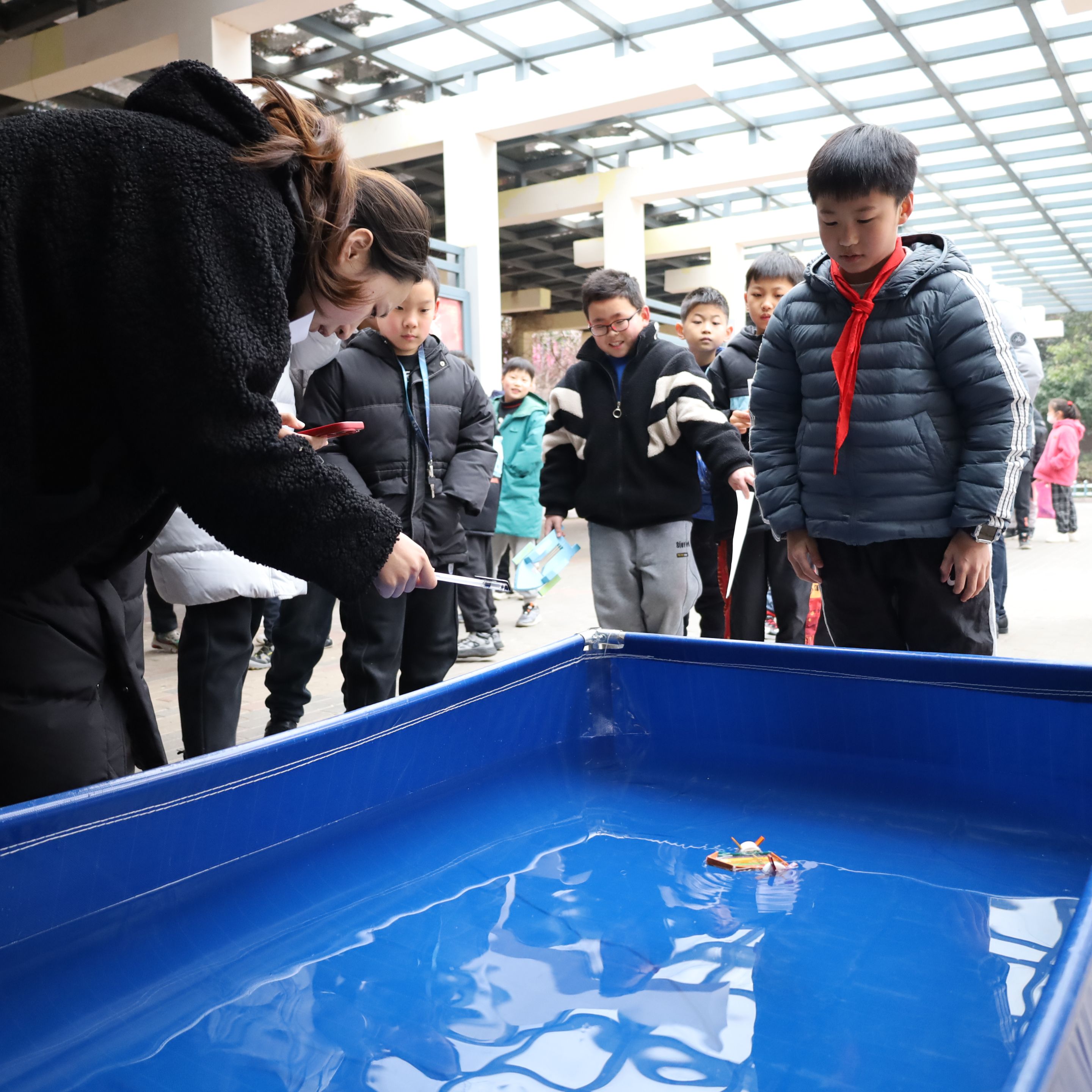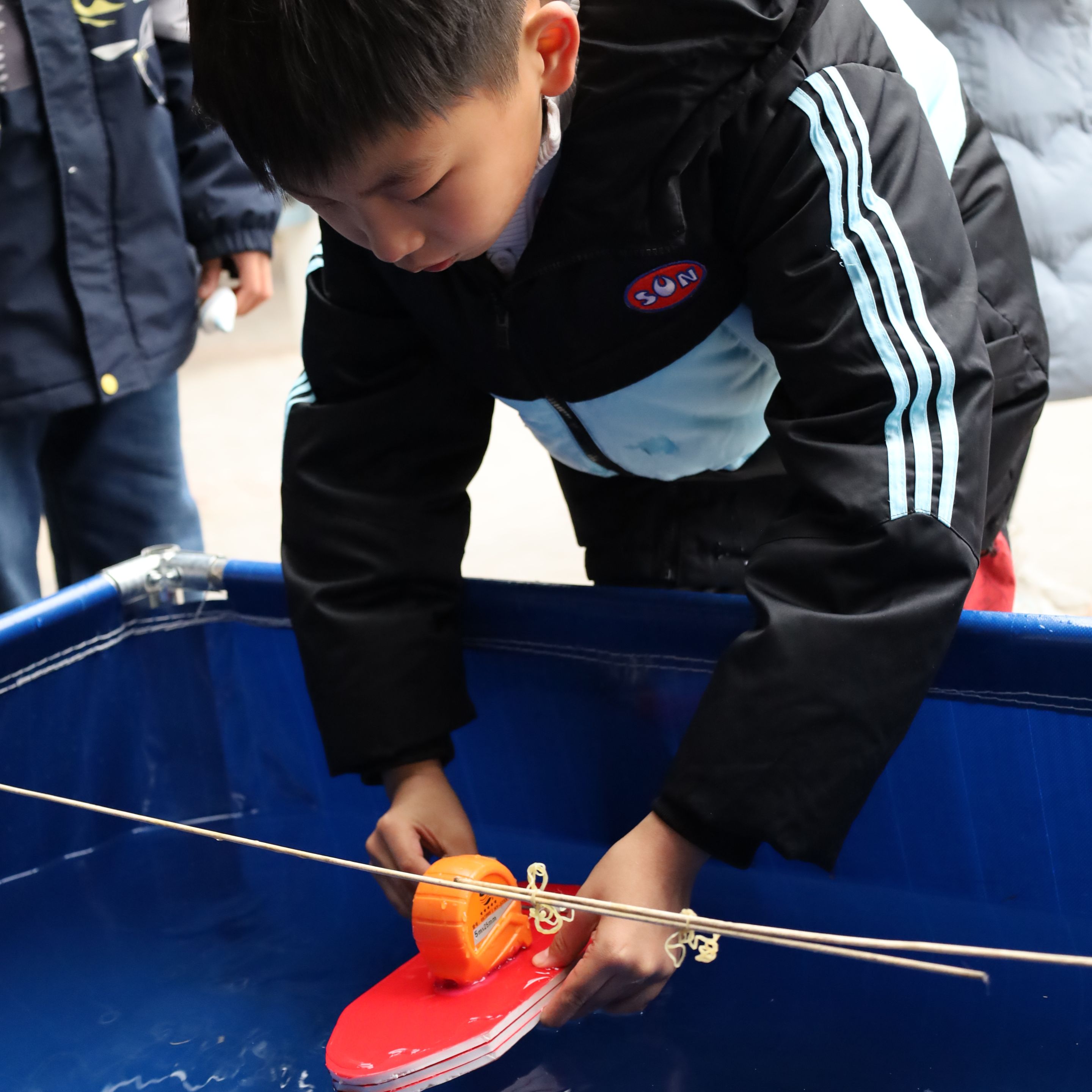 同学们设计并制作了各式各样的小船模型。水池中,小船们展开了激烈的角逐。小船不仅要速度快,还要兼具稳定性及环保性。选手们各显风采,充分展现了附小学子敢于创新与实践的精神。
