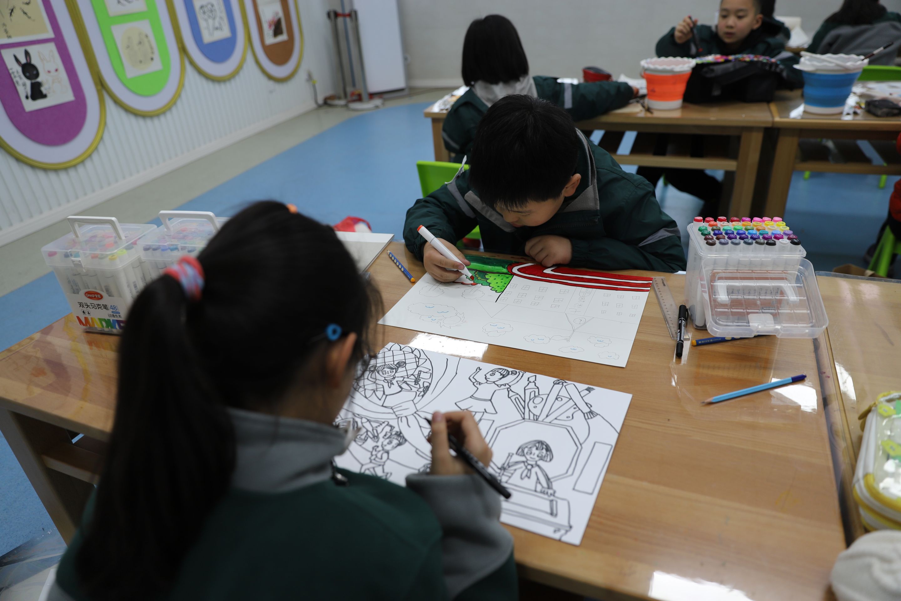 比赛现场,小书法家们自信满满,坐姿端正,将身心融于笔端,落笔运笔,提笔回收,或端庄秀气,或苍劲有力……小画家们大胆勾勒,以手绘心,用一支支五彩斑斓的画笔创作出心中的“魅力校园”。