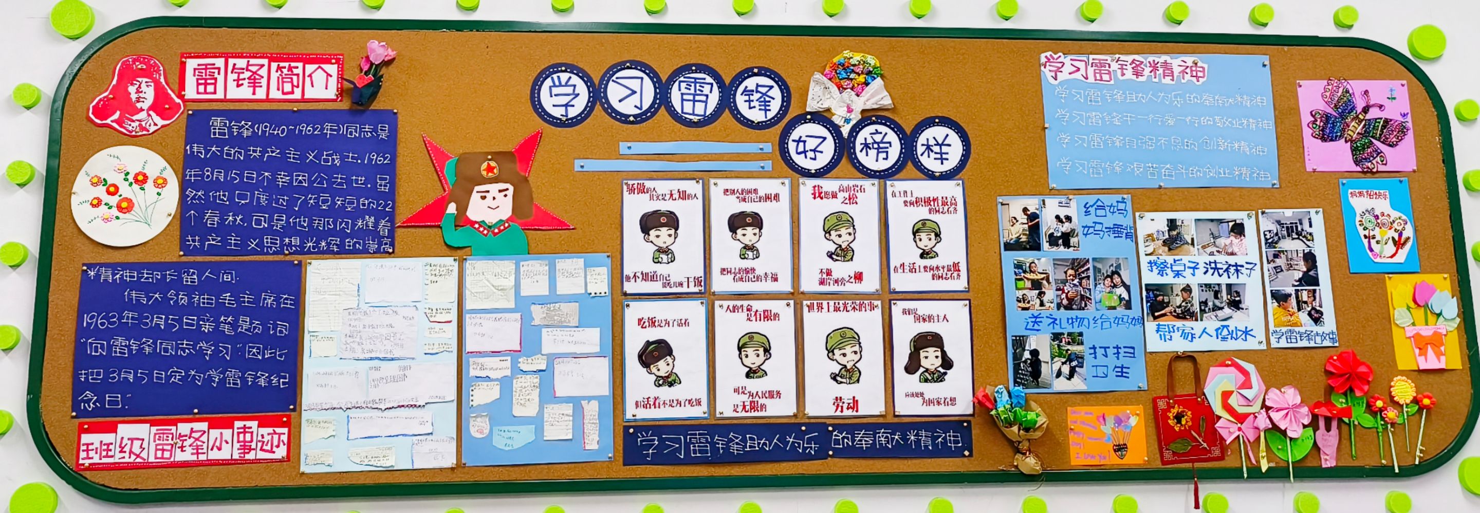 各中队以“雷锋精神代代传”为主题合作完成了一期黑板报,队员们用手中的画笔,描绘了新时代的雷锋精神。