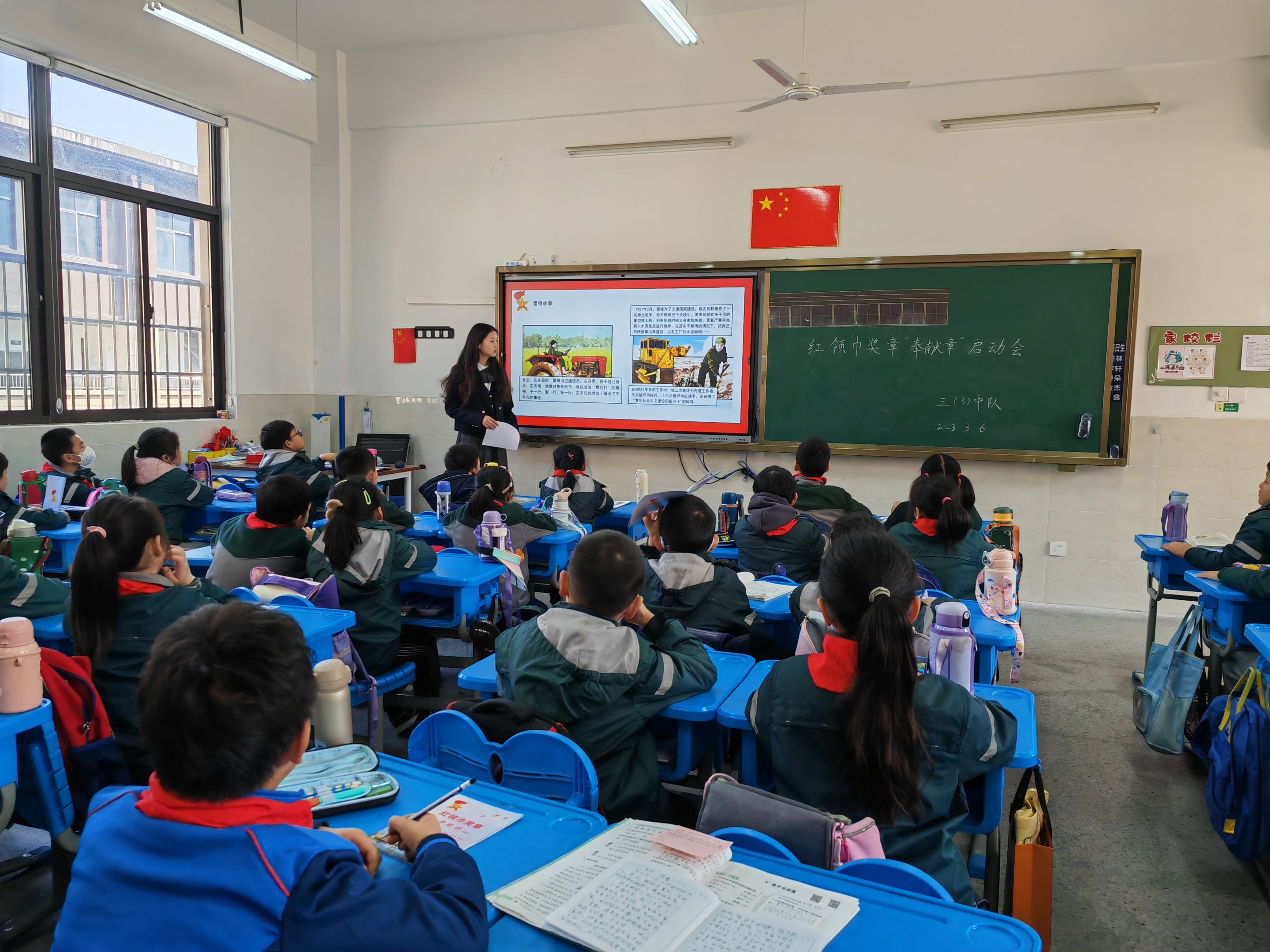 两校区各中队结合红领巾奖章“奉献章”的争章启动会。1—2年级以认识雷锋为主,3—4年级以了解雷锋同志的先进事迹为主,5—6年级以如何做雷锋式的好队员为主题,开展了形式多样的主题队会。