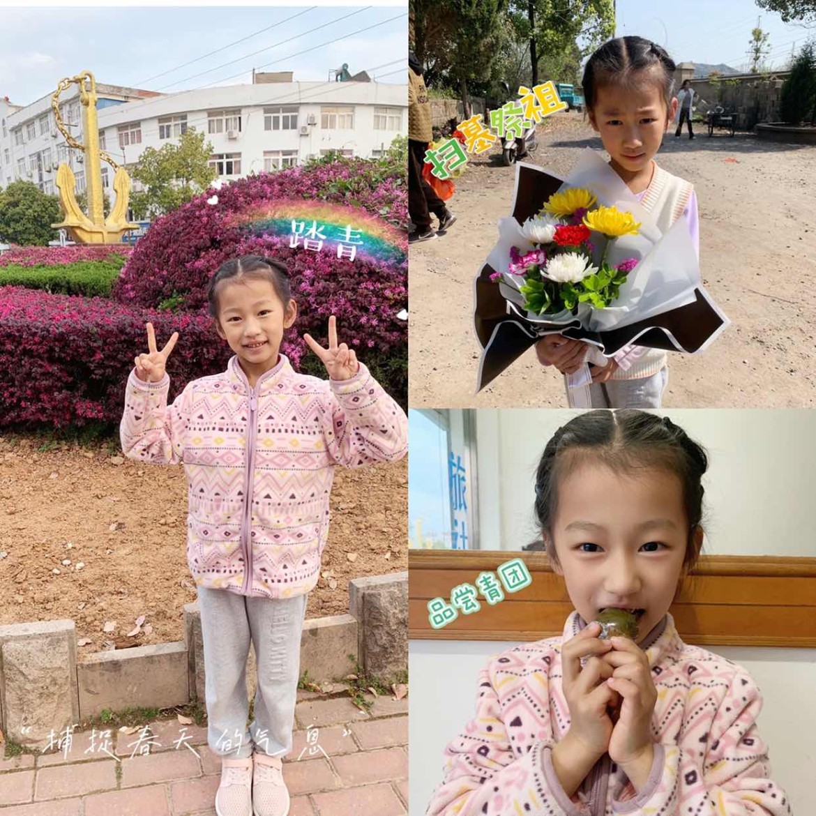 清明节期间,同学们在父母的带领下,踏青、插柳、做青团、扫墓等,体验生活。