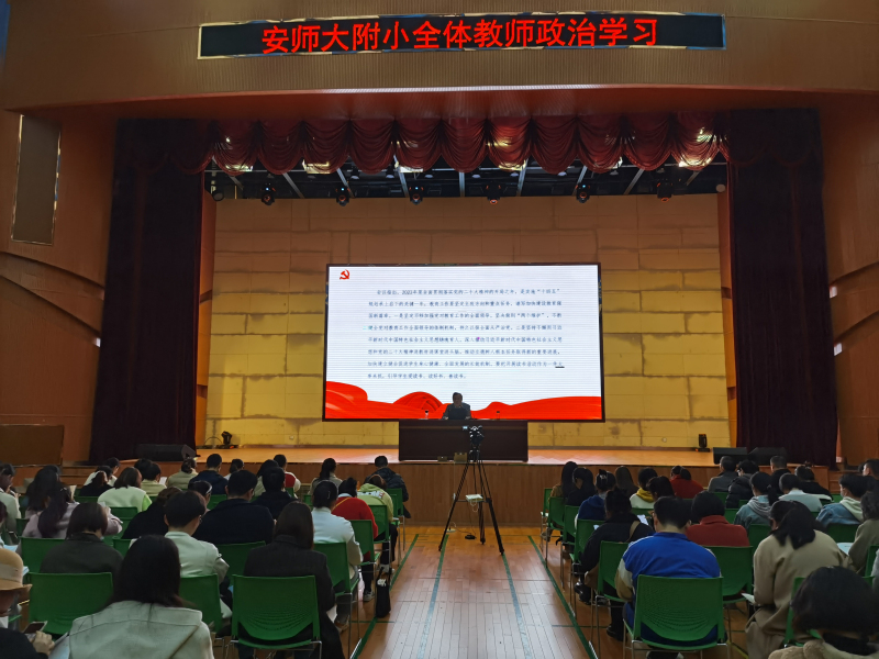 2023年4月7日下午,安师大附小在中校区学生活动中心开展全体教师政治学习。本次学习会由党委书记辛治洋主持,党委副书记茆家祥主讲。