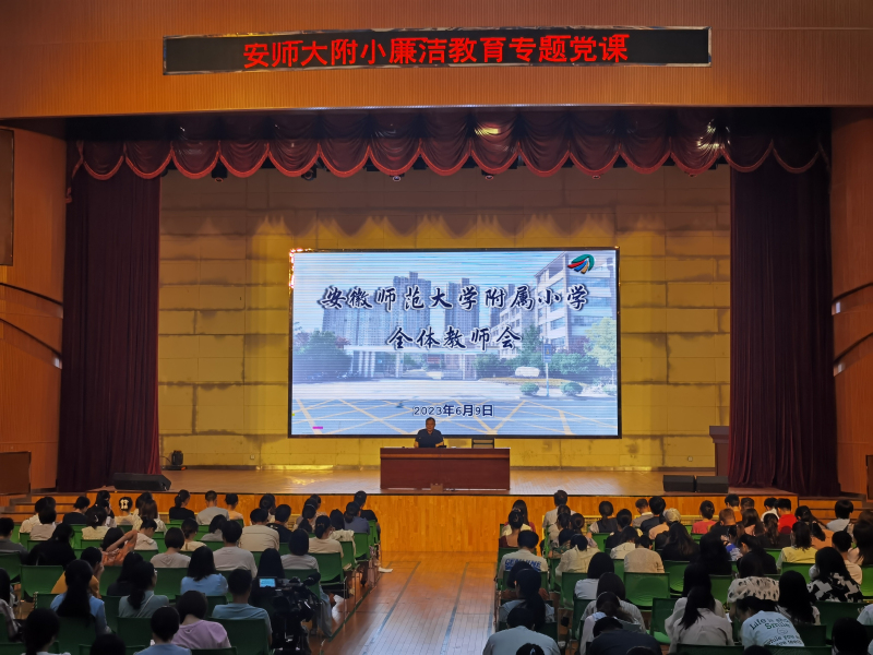 2023年6月9日下午,在我校中校区学生活动中心开展了廉洁教育专题党课报告会。本次党课由附小党委书记、校长辛治洋主持,附小党委副书记茆家祥主讲,附小本部全体教职工参加。